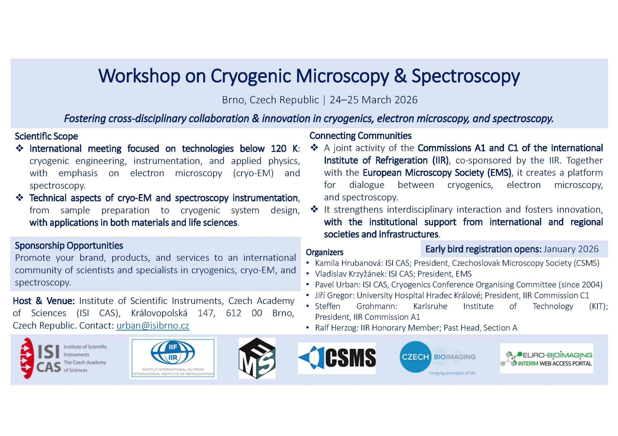 Host & Venue: Institute of Scientific Instruments, Czech Academy of Sciences (ISI CAS), Královopolská 147, 612 00 Brno, Czech Republic.